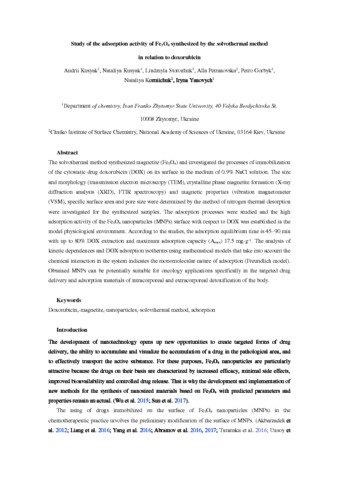 | Title: | Study of the adsorption activity of Fe3O4 synthesized by the solvothermal method in relation to doxorubicin |