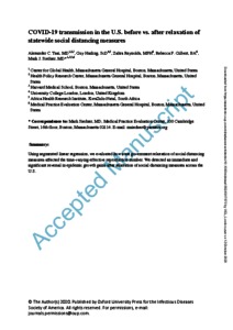 Title: | Coronavirus Disease 2019 (COVID-19) Transmission in the United States Before Versus After Relaxation of Statewide Social Distancing Measures |