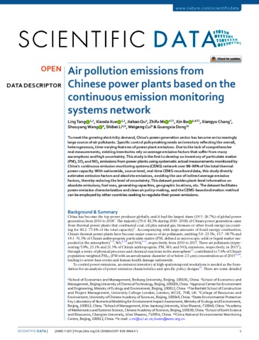 Title: | Air pollution emissions from Chinese power plants based on the continuous emission monitoring systems network |