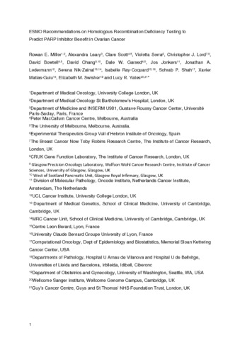 Title: | ESMO recommendations on predictive biomarker testing for homologous recombination deficiency and PARP inhibitor benefit in ovarian cancer |
