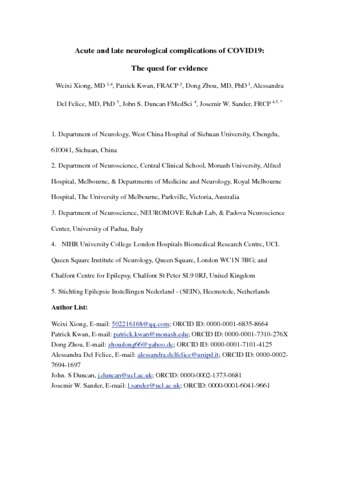 Acute and late neurological complications of COVID19: the quest for evidence.