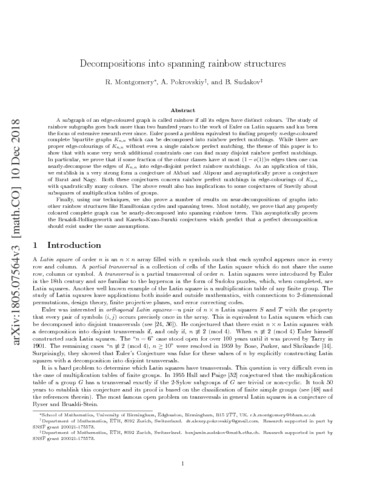 A subgraph of an edge-coloured graph is called rainbow if all its edges have distinct colours. The study of rainbow subgraphs goes back more than two hundred years to the work of Euler on Latin squares and has been the focus of extensive research ever since. Euler posed a problem equivalent to finding properly n-edge-coloured complete bipartite graphs Kn,n which can be decomposed into rainbow perfect matchings. While there are proper edge-colourings of Kn,n without even a single rainbow perfect matching, the theme of this paper is to show that with some very weak additional constraints one can find many disjoint rainbow perfect matchings. In particular, we prove that if some fraction of the colour classes have at most (1 − o(1))n edges then one can nearly-decompose the edges of Kn,n into edge-disjoint perfect rainbow matchings. As an application of this, we establish in a very strong form a conjecture of Akbari and Alipour and asymptotically prove a conjecture of Barat and Nagy. Both these conjectures concern rainbow perfect matchings in edge-colourings of Kn,n with quadratically many colours. The above result also has implications to some conjectures of Snevily about subsquares of multiplication tables of groups. Finally, using our techniques, we also prove a number of results on near-decompositions of graphs into other rainbow structures like Hamiltonian cycles and spanning trees. Most notably, we prove that any properly coloured complete graph can be nearly-decomposed into spanning rainbow trees. This asymptotically proves the Brualdi-Hollingsworth and Kaneko-Kano-Suzuki conjectures which predict that a perfect decomposition should exist under the same assumptions.