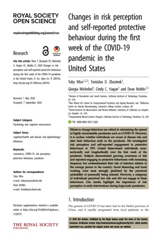 Title: | Changes in risk perception and self-reported protective behaviour during the first week of the COVID-19 pandemic in the United States |