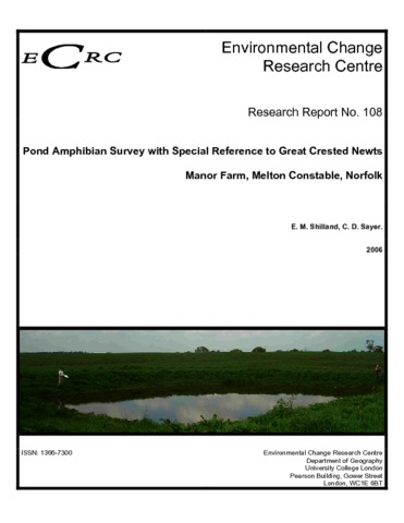 Title: | Pond amphibian survey with special reference to Great Crested Newts. Manor Farm, Melton Constable, Norfolk |