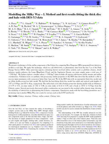 Title: | Modelling the Milky Way - I. Method and first results fitting the thick disc and halo with DES-Y3 data |