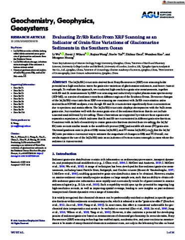 Title: | Evaluating Zr/Rb ratio from XRF scanning as an indicator of grain‐size variations of glaciomarine sediments in the Southern Ocean |