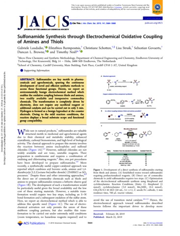 Title: | Sulfonamide Synthesis through Electrochemical Oxidative Coupling of Amines and Thiols |