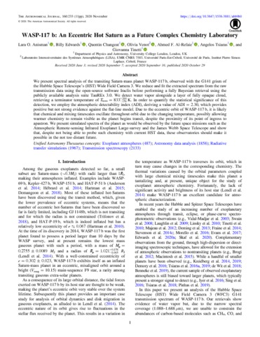 Title: | WASP-117 b: An Eccentric Hot Saturn as a Future Complex Chemistry Laboratory |