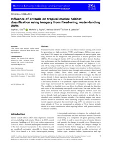 Title: | Influence of altitude on tropical marine habitat classification using imagery from fixed‐wing, water‐landing UAVs |