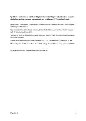 Qualitative Evaluation of Web-Based Digital Intervention to Prevent and Reduce Excessive Alcohol Use and Harm Among Young People Aged 14-15 Years: A "Think-Aloud" Study.