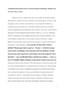 Title: | Transgender Reassessments of the Cross-Dressed Page in Shakespeare, Philaster, and The Honest Man's Fortune |