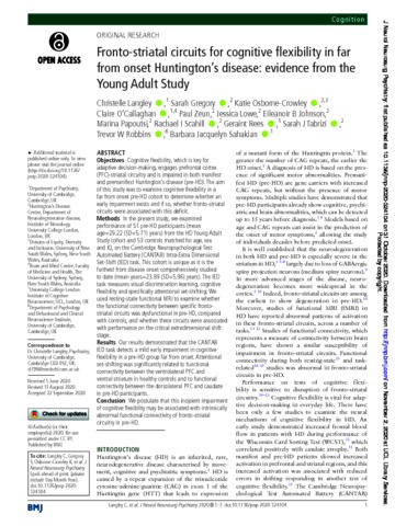 Title: | Fronto-striatal circuits for cognitive flexibility in far from onset Huntington's disease: evidence from the Young Adult Study |