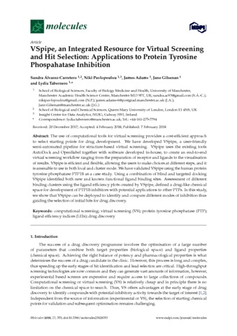 Title: | VSpipe, an Integrated Resource for Virtual Screening and Hit Selection: Applications to Protein Tyrosine Phospahatase Inhibition |