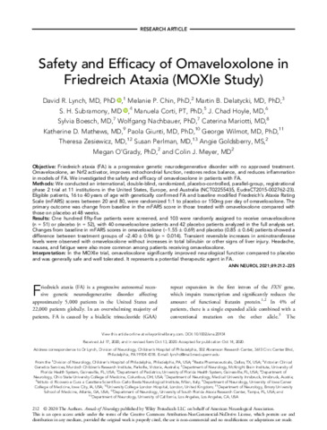 Safety and Efficacy of Omaveloxolone in Friedreich Ataxia (MOXIe Study).pdf - Published Version Download (1MB) | Preview |