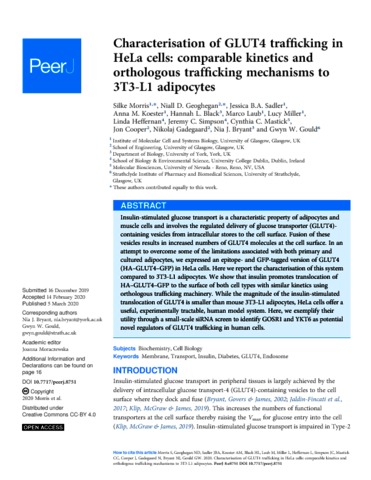 Title: | Characterisation of GLUT4 trafficking in HeLa cells: Comparable kinetics and orthologous trafficking mechanisms to 3T3-L1 adipocytes |