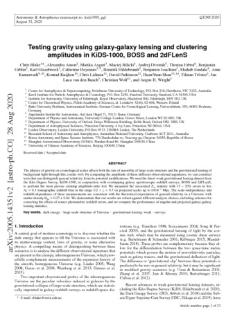 Title: | Testing gravity using galaxy-galaxy lensing and clustering amplitudes in KiDS-1000, BOSS, and 2dFLenS |