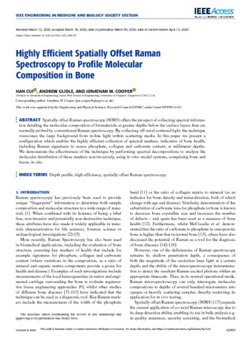 Title: | Highly Efficient Spatially Offset Raman Spectroscopy to Profile Molecular Composition in Bone |