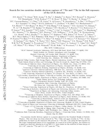 Title: | Search for two neutrino double electron capture of ¹²⁴Xe and ¹²⁶Xe in the full exposure of the LUX detector |