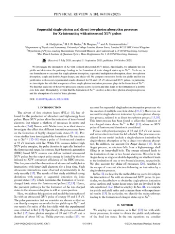 | Title: | Sequential single-photon and direct two-photon absorption processes for Xe interacting with attosecond XUV pulses |