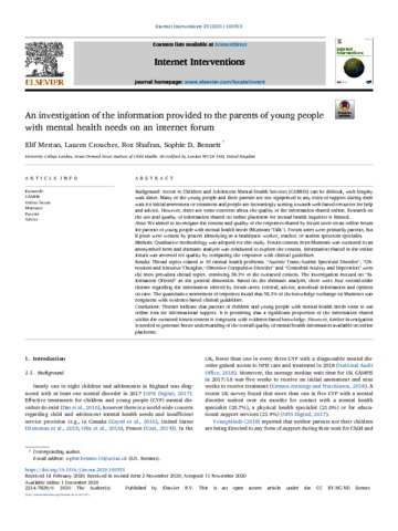 Title: | An Investigation of the Information Provided to the Parents of Young People with Mental Health Needs on an Internet Forum |
