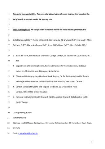 The Potential Added Value of Novel Hearing Therapeutics: An Early Health Economic Model for Hearing Loss.