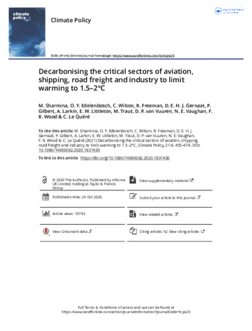 Title: | Decarbonising the critical sectors of aviation, shipping, road freight and industry to limit warming to 1.5–2°C |