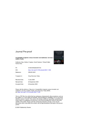 Title: | Acceptability of generic versus innovator oral medicines: not only a matter of taste |