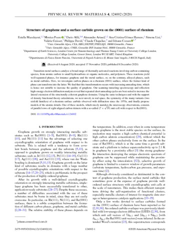 Title: | Structure of graphene and a surface carbide grown on the (0001) surface of rhenium |