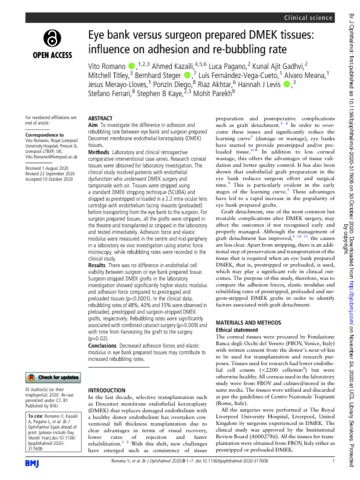 Eye bank versus surgeon prepared DMEK tissues: influence on adhesion and re-bubbling rate.