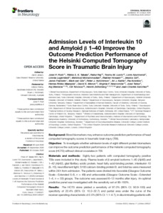 Admission Levels of Interleukin 10 and Amyloid β 1–40 Improve the Outcome Prediction Performance of the Helsinki Computed Tomography Score in Traumatic Brain Injury.