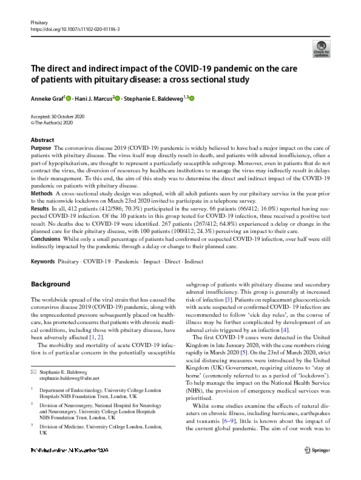 | Title: | The direct and indirect impact of the COVID-19 pandemic on the care of patients with pituitary disease: a cross sectional study |