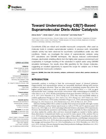 Title: | Toward Understanding CB[7]-Based Supramolecular Diels-Alder Catalysis |