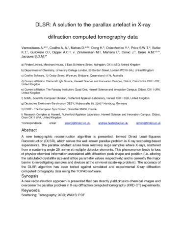 Title: | DLSR: a solution to the parallax artefact in X-ray diffraction computed tomography data |