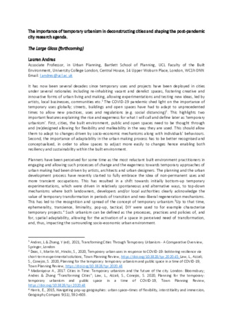 Andres_The importance of temporary urbanism in deconstructing cities and shaping the post-pandemic city research agenda_AAM.pdf Download (548kB) | Preview |