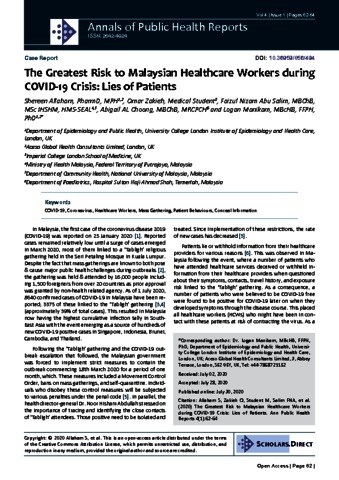 The Greatest Risk to Malaysian Healthcare Workers during COVID-19 Crisis: Lies of Patients.