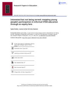 Archer_Interested but not being served mapping young people s participation in informal STEM education through an equity lens.pdf Download (903kB) | Preview |