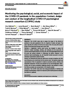 Title: | Monitoring the psychological, social, and economic impact of the COVID-19 pandemic in the population: Context, design and conduct of the longitudinal COVID-19 psychological research consortium (C19PRC) study |