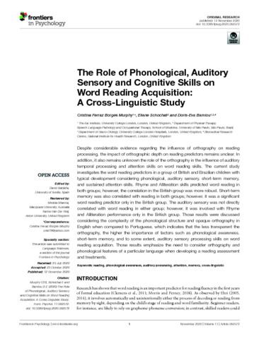 | Title: | The Role of Phonological, Auditory Sensory and Cognitive Skills on Word Reading Acquisition: A Cross-Linguistic Study |