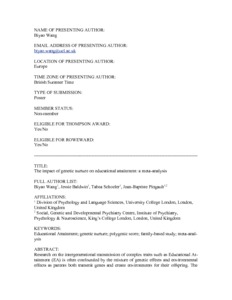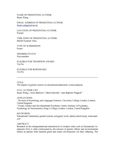 Title: | The impact of genetic nurture on educational attainment: a meta-analysis |