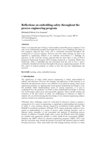 | Title: | Reflections on embedding safety throughout the process engineering program |