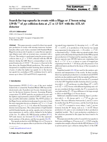 Title: | Search for top squarks in events with a Higgs or Z boson using 139 fb−1 of pp collision data at √ s = 13 TeV with the ATLAS detector |
