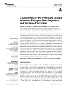 Title: | Development of the Vestibular Lamina in Human Embryos: Morphogenesis and Vestibule Formation |