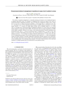 Measurement-induced entanglement transitions in many-body localized systems.