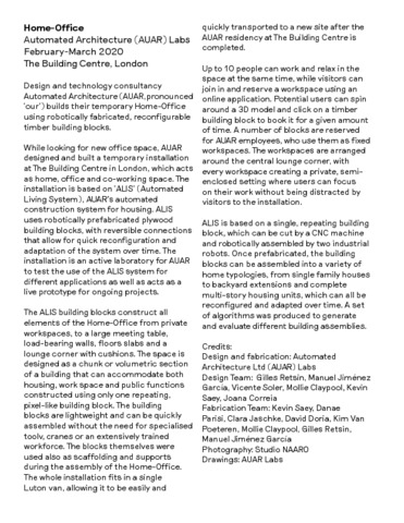 Automated Architecture (AUAR) Labs: London, UK.
