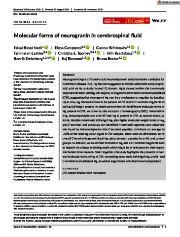 Molecular forms of neurogranin in cerebrospinal fluid.
