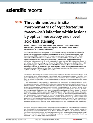 Title: | Three-dimensional in situ morphometrics of Mycobacterium tuberculosis infection within lesions by optical mesoscopy and novel acid-fast staining |