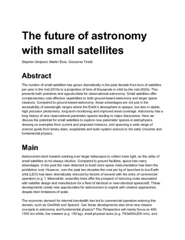 Title: | The future of astronomy with small satellites |
