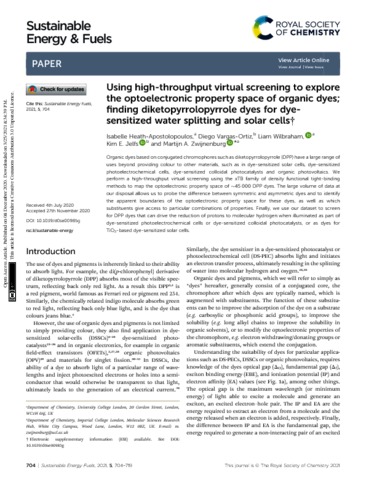 Title: | Using high-throughput virtual screening to explore the optoelectronic property space of organic dyes; finding diketopyrrolopyrrole dyes for dye-sensitized water splitting and solar cells |