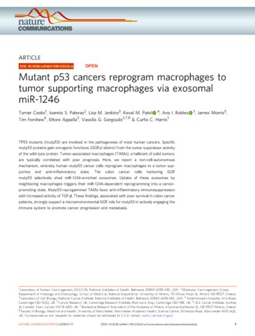 Title: | Mutant p53 cancers reprogram macrophages to tumor supporting macrophages via exosomal miR-1246 |