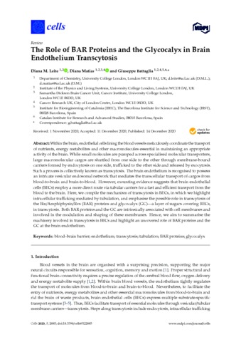 Keywords: | BAR proteins, blood–brain barrier, endothelium, glycocalyx, transcytosis, tubulation |